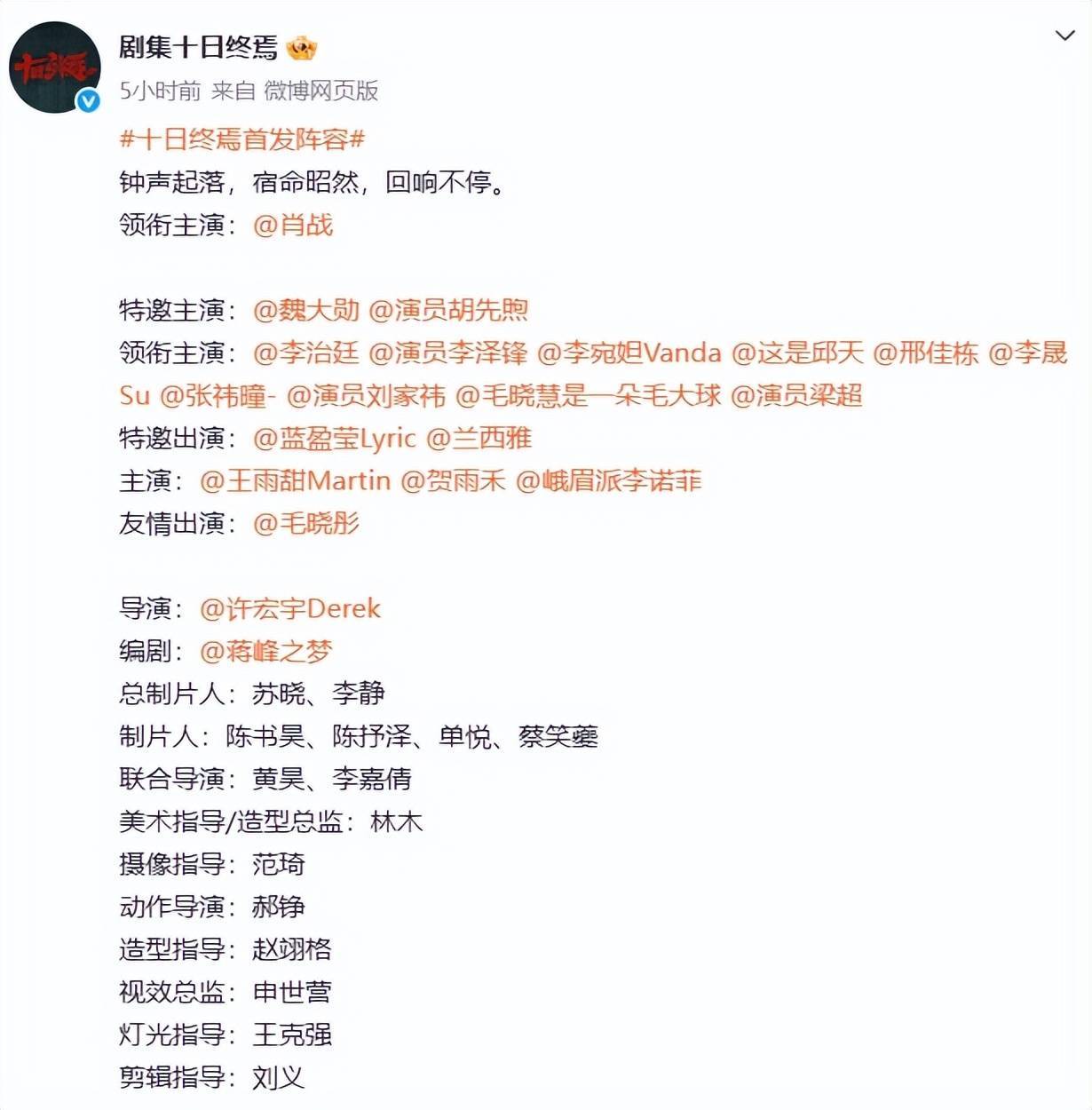 其实只须《旬日终焉》拍完后能够奏凯上线,那么该剧就很好像率能够成为爆款。