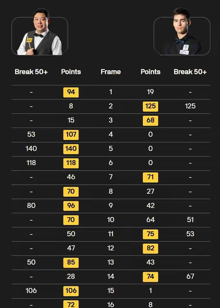 这孩子这个赛季打得是真可以,世锦赛之前还轰出了一杆147,效果此次对上卢卡·布雷切尔,明明我方也打出了147满分杆,临了照旧8-10输了。
