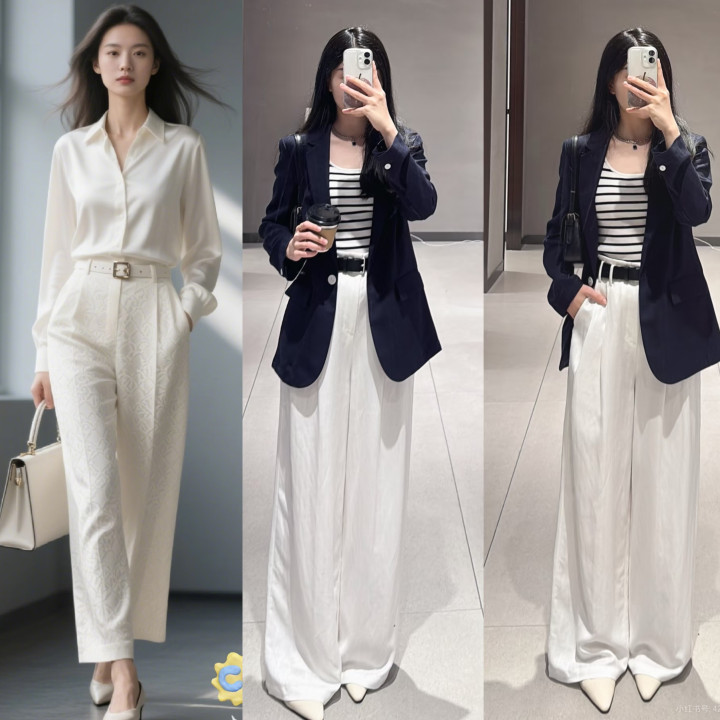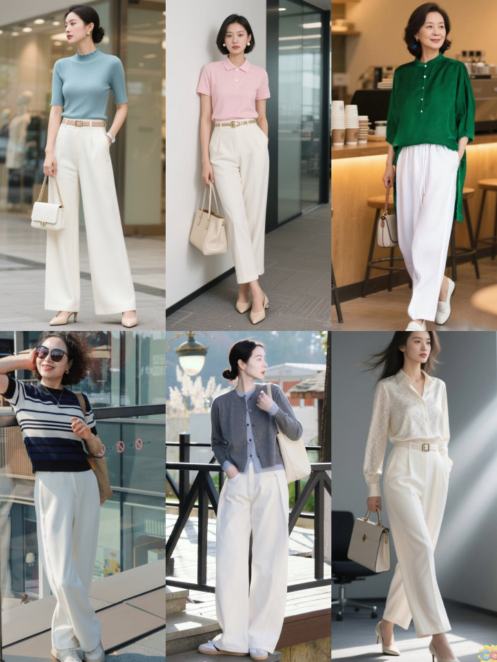 接下来,给大家共享6组白裤子配色公式,以及白裤子该若何选择的念念路。但愿我的共享,能给姐妹们带来穿搭灵感,在这个春夏把白裤子穿得斯文洋气。