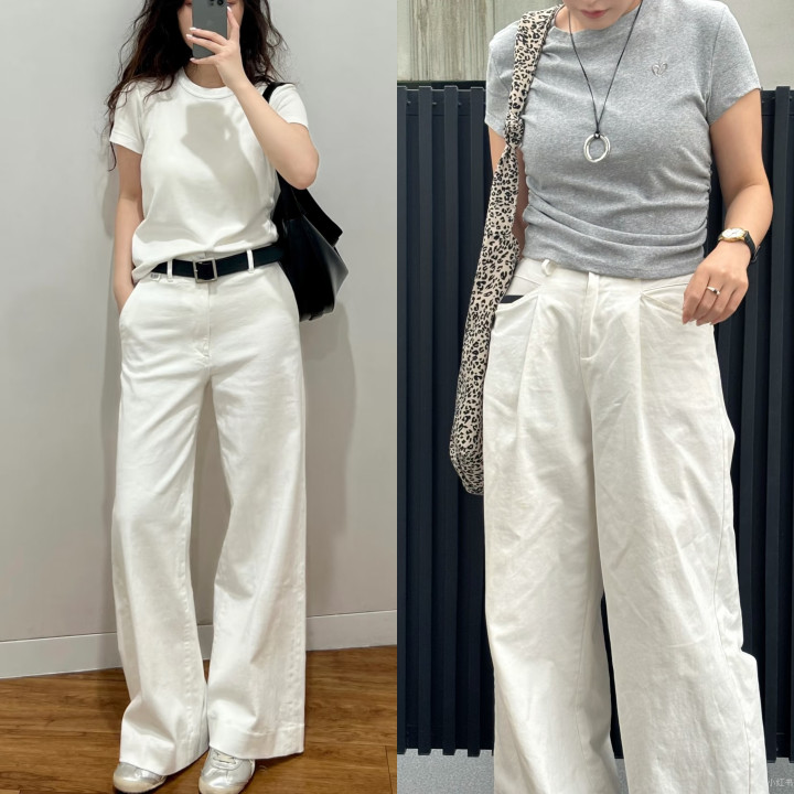 白裤子选择白色上衣搭配,全体同色系组合,干净显白又高等。