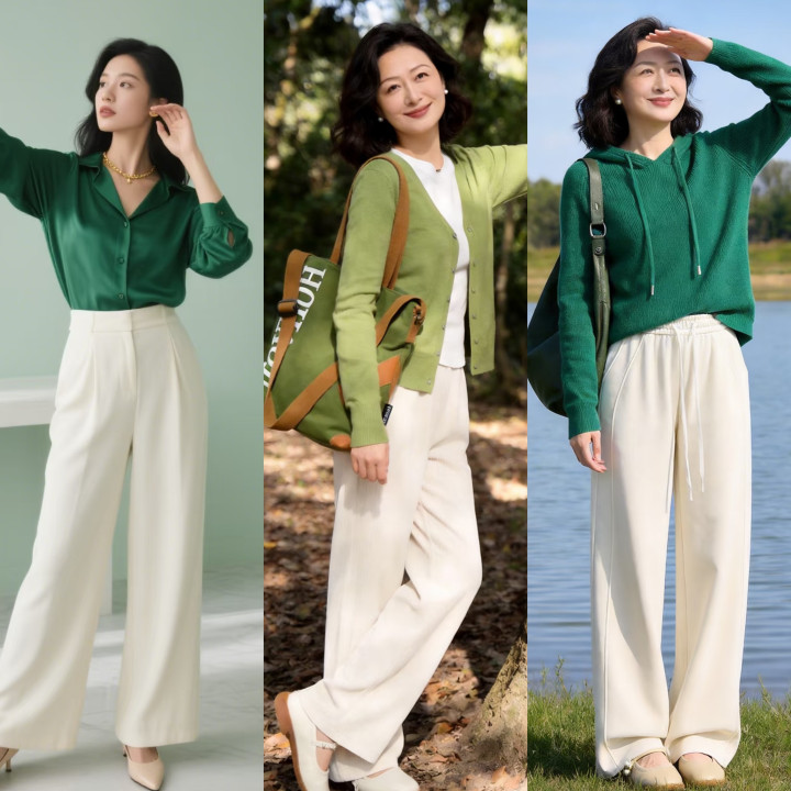 有些东谈主总这样认为,女性东谈主到中年就别再穿大红大绿了,会显村炮。其实只消选择低饱和度绿色服装,再搭对白色裤子,不但不村炮,还显得活力满满又贵气。