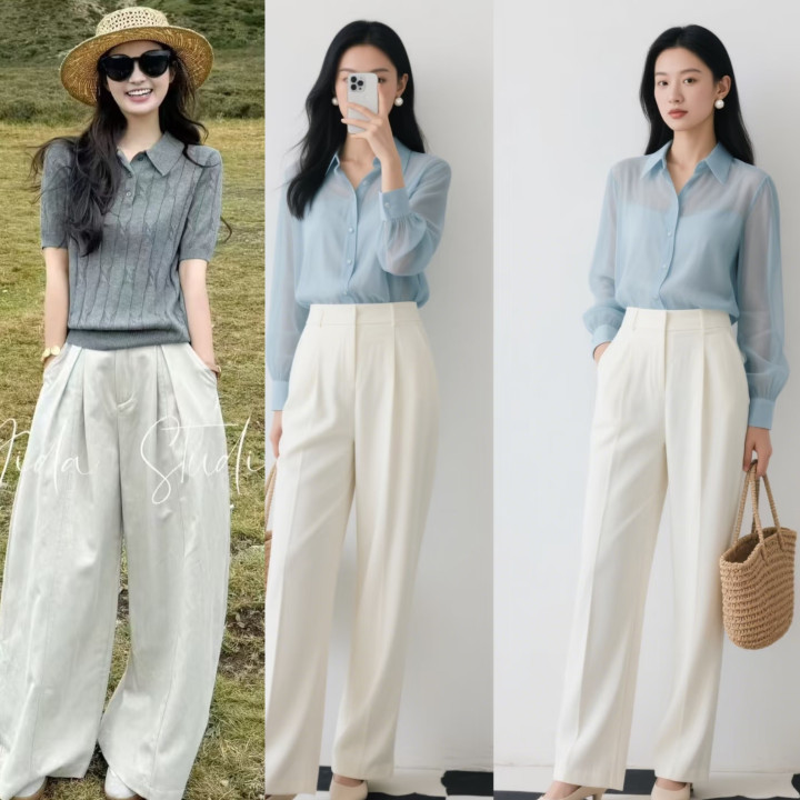 白裤子有不同版型,如修身微喇裤、九分烟管裤、合体直筒裤、宽松阔腿裤、利落遮肉的西装裤等,姐妹们要字据各自躯壳选择。
