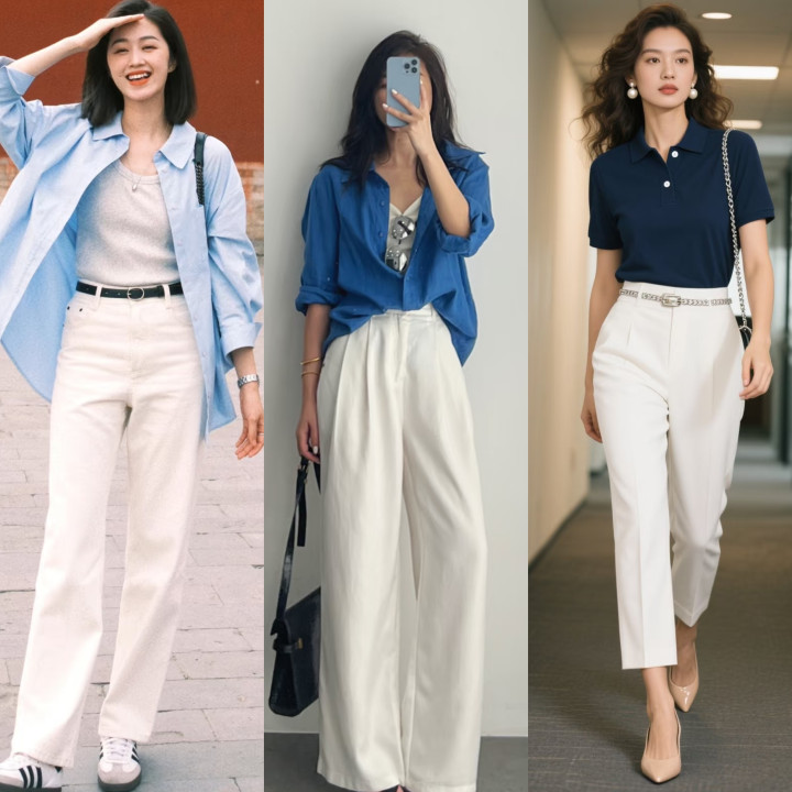 白色和蓝色搭配,如同蓝天白云组合,让东谈主嗅觉舒心露馅。这对组合不挑肤色和东谈主群,任何东谈主皆符合穿戴。不管和浅蓝、天蓝、藏蓝等上衣搭配,皆不会出错。