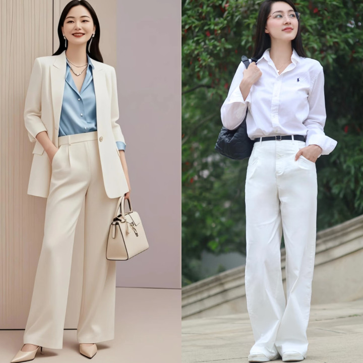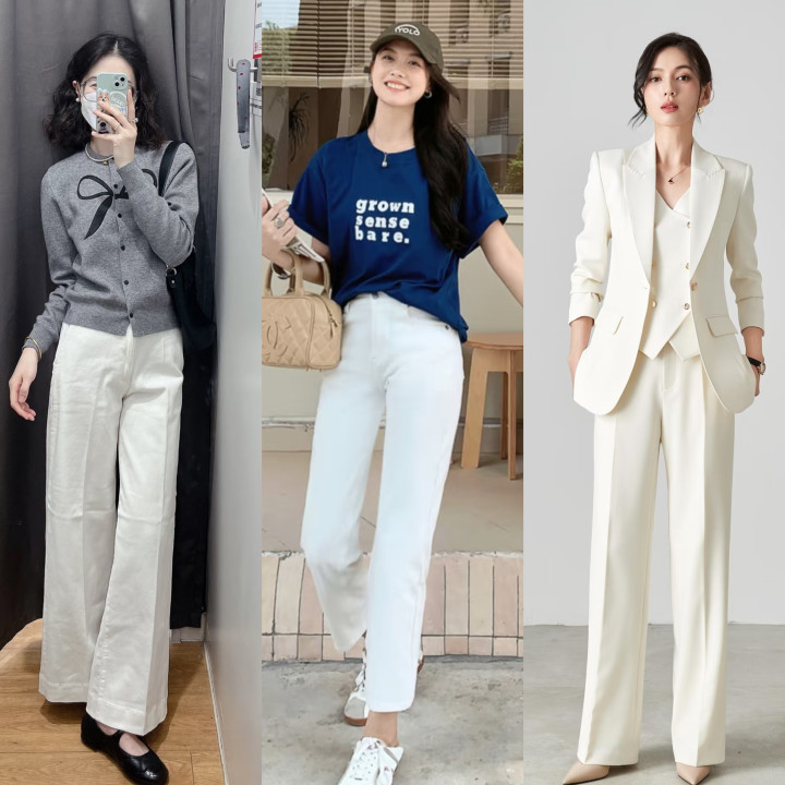 而白得莫得少许杂质或偏蓝调的白裤子,称为冷白色,更符合肤色洁白的女性,穿出气质阴凉造型。肤白的女性,穿上暖白色裤子,柔好意思又显白。