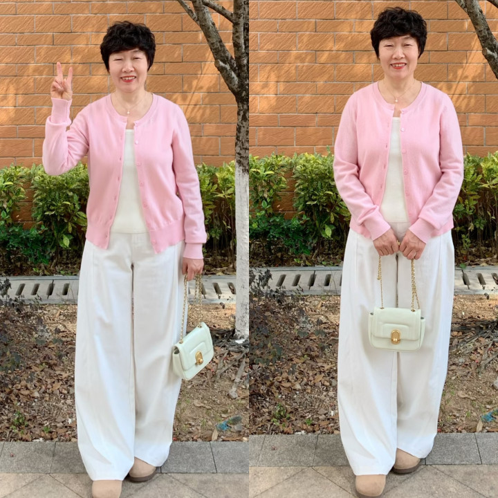 提到粉色服装,好多姐妹内心想穿却又纠结,惦念穿出扮嫩感。其实只消选择白裤子搭配,让全体色彩酿成一致,就不会显突兀。