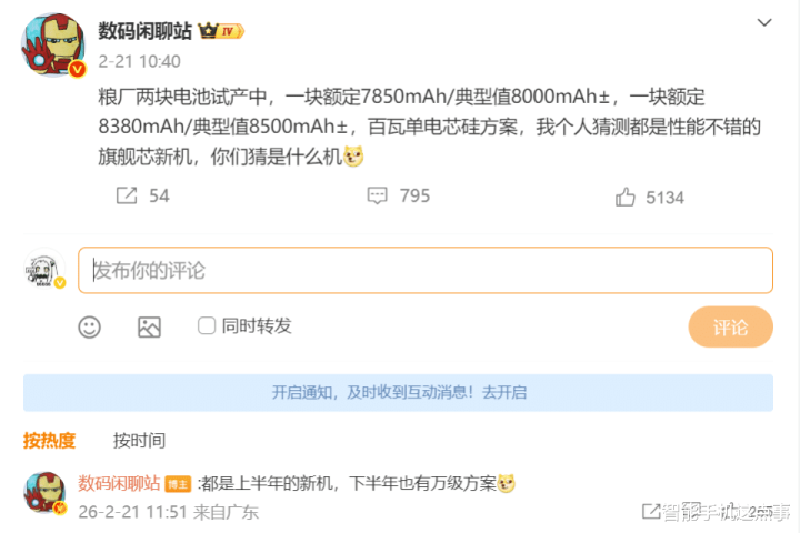 近期有博主表露小米正在试产的两块电板,一块8000mAh,一块8500mAh,径直把主流旗舰的电板容量天花板又往上顶了一大截。