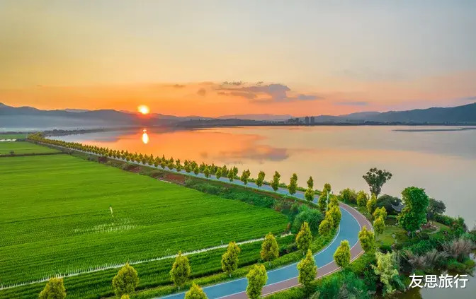 到今天,仍是不错买一张车票,坐上红黄相间的小火车,伴跟着当当当的高昂鸣笛声,以极慢的速率穿过田园,跨过异龙湖。