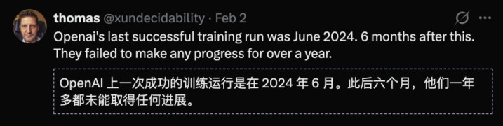 有网友暗指OpenAI在模子开发上「停滞不前」。自从2024年6月后,OpenAI在大型模子预调查上遇阻之后,一年多以来无紧要突破。
