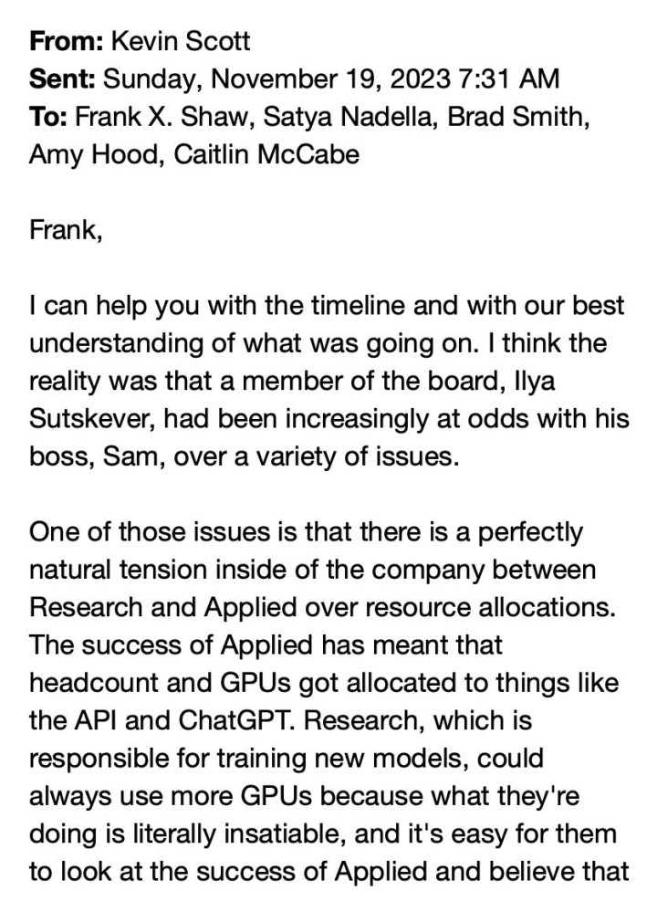 微软首席工夫官KevinScott一封邮件绝对解开了Ilya出走OpenAI的真相──