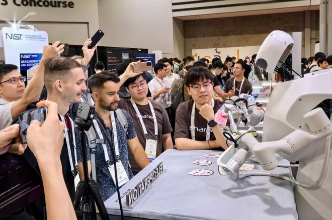 这其实同期熟悉了几件事:一是机器东谈主是否确切「厚实」规矩,而不是照着剧本走;二是能否褂讪操作纸牌这种又薄又小、很容易粘连和滑动的物体;三是整套系统能否在贯穿有计算和看成中保握褂讪运行。
